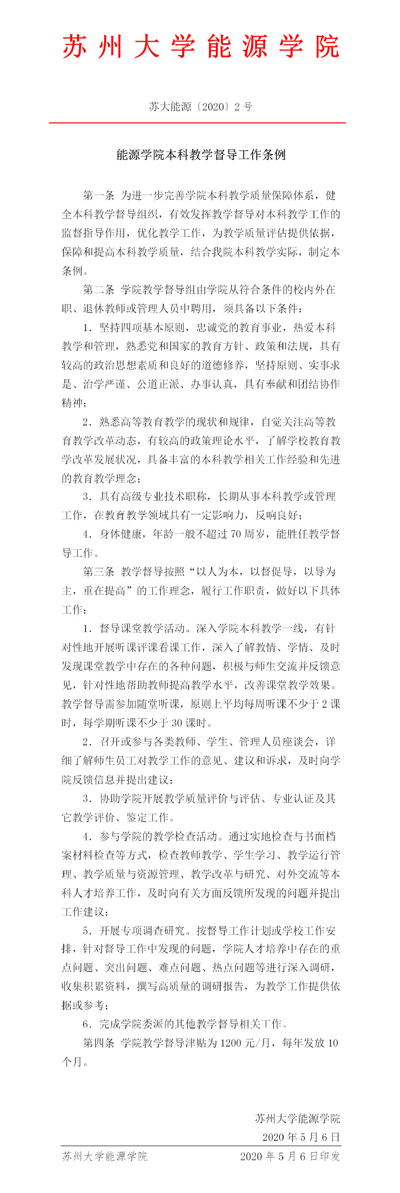 禁漫天堂 本科教学督导工作条例 苏大能源〔2020〕2号